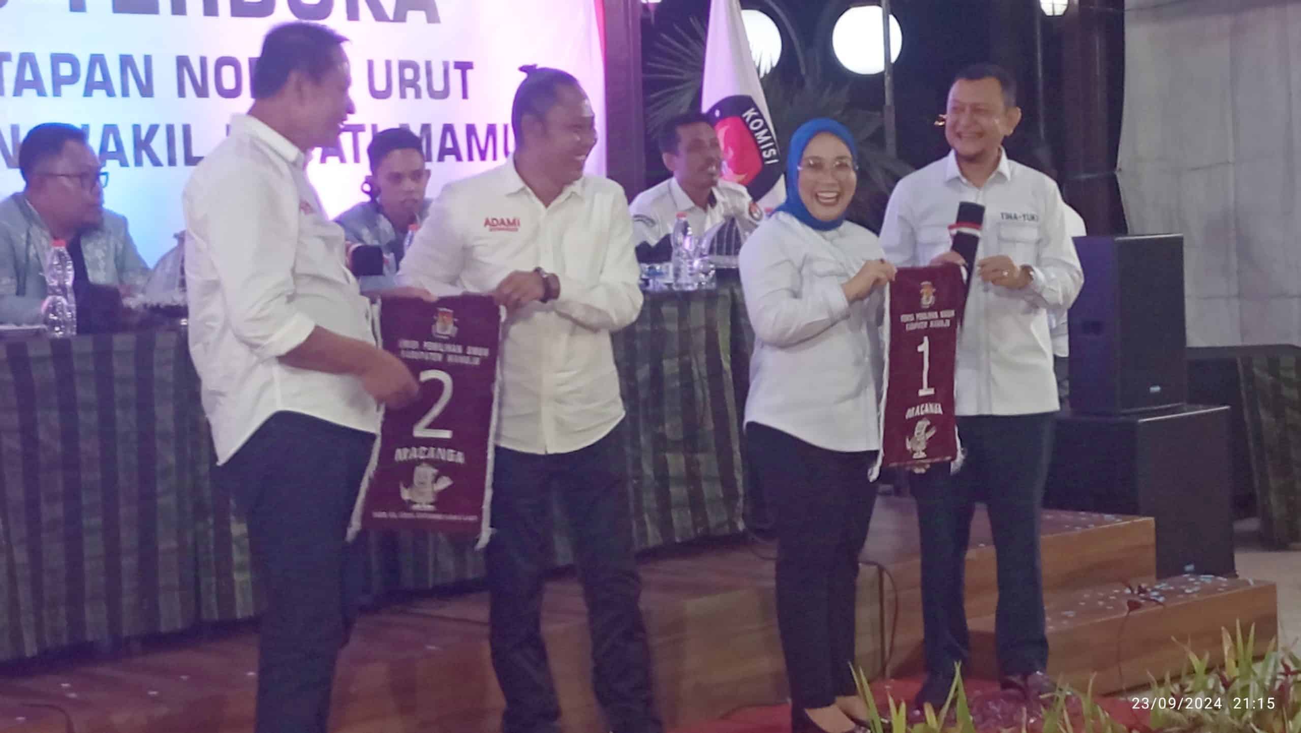 Sutinah – Yuki, Calon Bupati dan Wakil Bupati Mamuju meraih nomor urut 1 dan Ado – Damris mendapatkan nomor urut 2.