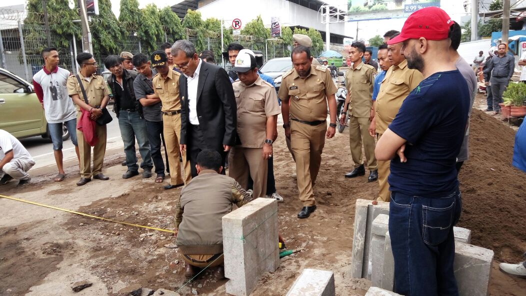 beritaini.com, Makassar – Hari ini, Walikota Makassar, Danny Pomanto turun langsung meninjau proyek pembangunan pedestrian di jalan Nusantara, didampingi Kepala Dinas Pekerjaan Umum Kota Makassar, Muh. Ansar beserta sejumlah pejabat Pemkot dan staf lainnya, Senin, 23/01.