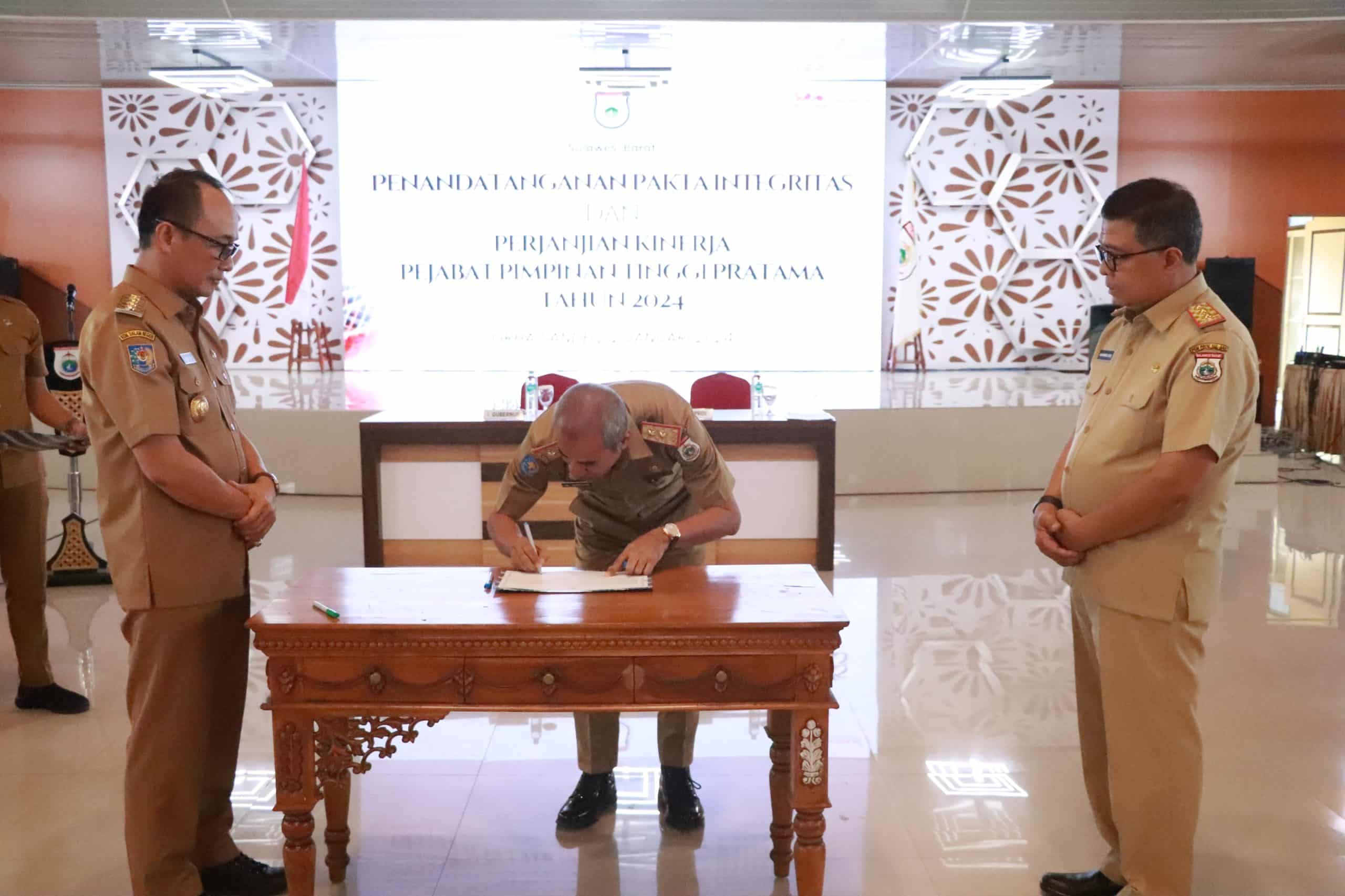 Mamuju, Beritaini.com – Mengawali pelaksanaan tugas Penyelenggaraan Pemerintahan Tahun 2024, Pj Gubernur Sulawesi Barat, Zudan Arif Fakrulloh, langsung bergerak cepat dengan melaksanakan penandatanganan Pakta Integritas dan Perjanjian Kinerja Tahun 2024 bersama sejumlah kepala OPD se Provinsi Sulawesi Barat, Selasa 2 Februari 2024.