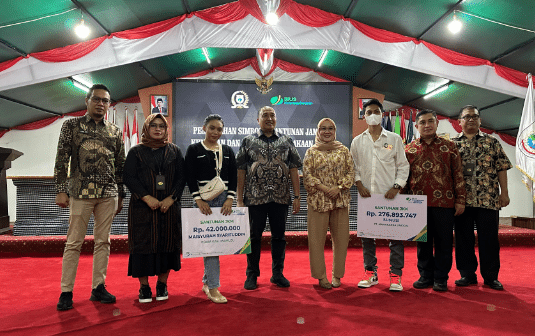 Dalam kesempatan tersebut, tak lupa BPJS Ketenagakerjaan melaksanakan simbolis penyerahan santunan JKM kepada tenaga kerja Maisyurah Syarifuddin, yang diterima oleh ahli waris, Ridwan, dengan nominal sebesar Rp42.000.000 dan santunan JKK kepada Tenaga Kerja Sunusi yang diterima oleh ahli waris, Murni, prusahaan PT Manakarra Unggul dengan nilai nominal Rp276.893.747.
