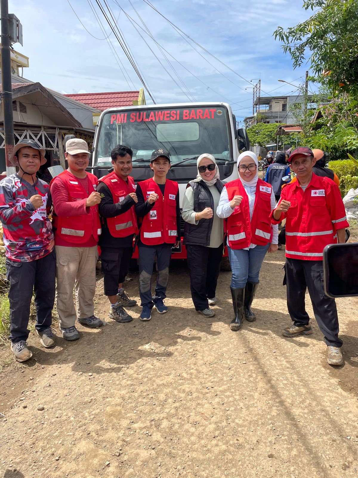 Sutinah Suhardi yang juga Ketua PMI Mamuju berkoordinasi dengan PMI Sulawesi Barat untuk melayani kebutuhan air bersih dan membersihkan fasilitas umum seperti sekolah dan masjid yang terdampak banjir.