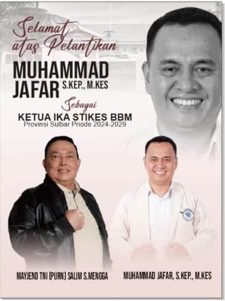 Majene, Beritaini.com – Ketua IKA STIKES BBM (Sekolah Tinggi Ilmu Kesehatan Bina Bangsa Majene), Muhammad Jafar, S.Kep,MMKes, resmi dilantik bersamaan dengan pengukuhan Ikatan Alumni STIKES BBM di Majene, Rabu 20 Maret 2024.