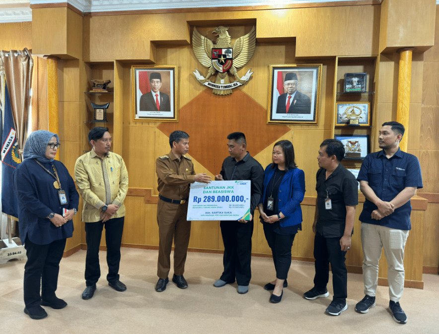 Mamasa, Beritaini.com – BPJS Ketenagakerjaan (BPJAMSOSTEK) Cabang Polewali Mandar dengan wilayah kerja mencakup Kabupaten Mamasa menyerahkan santunan JKK Meninggal dan beasiswa sebesar Rp289 juta kepada ahli waris anggota Panitia Pemungutan Suara (PPS) Desa Minanga Timur, Kecamatan Nosu, Kabupaten Mamasa.