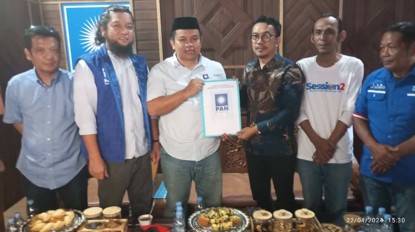 Proses pendaftaran kandidat bakal calon Bupati Mamuju di Kantor DPD PAN Mamuju, juga dihadiri Sekertaris Tim Penjaringan Pilkada PAN Mamuju, Lalu Syamsul Rizal, Asraruddin Anggota Tim, Irwan Administrasi dan Sekertaris DPD PAN Mamuju Imran HB.