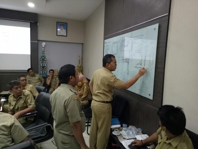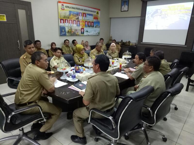 Didampingi staf serta pejabat di Lingkup Dinas Pekerjaan Umum Kota Makassar, Kepala Dinas PU Muh. Ansar serius menyimak pemaparan Danny di ruang Rapat Kadis PU Kota Makassar. (*/irf)