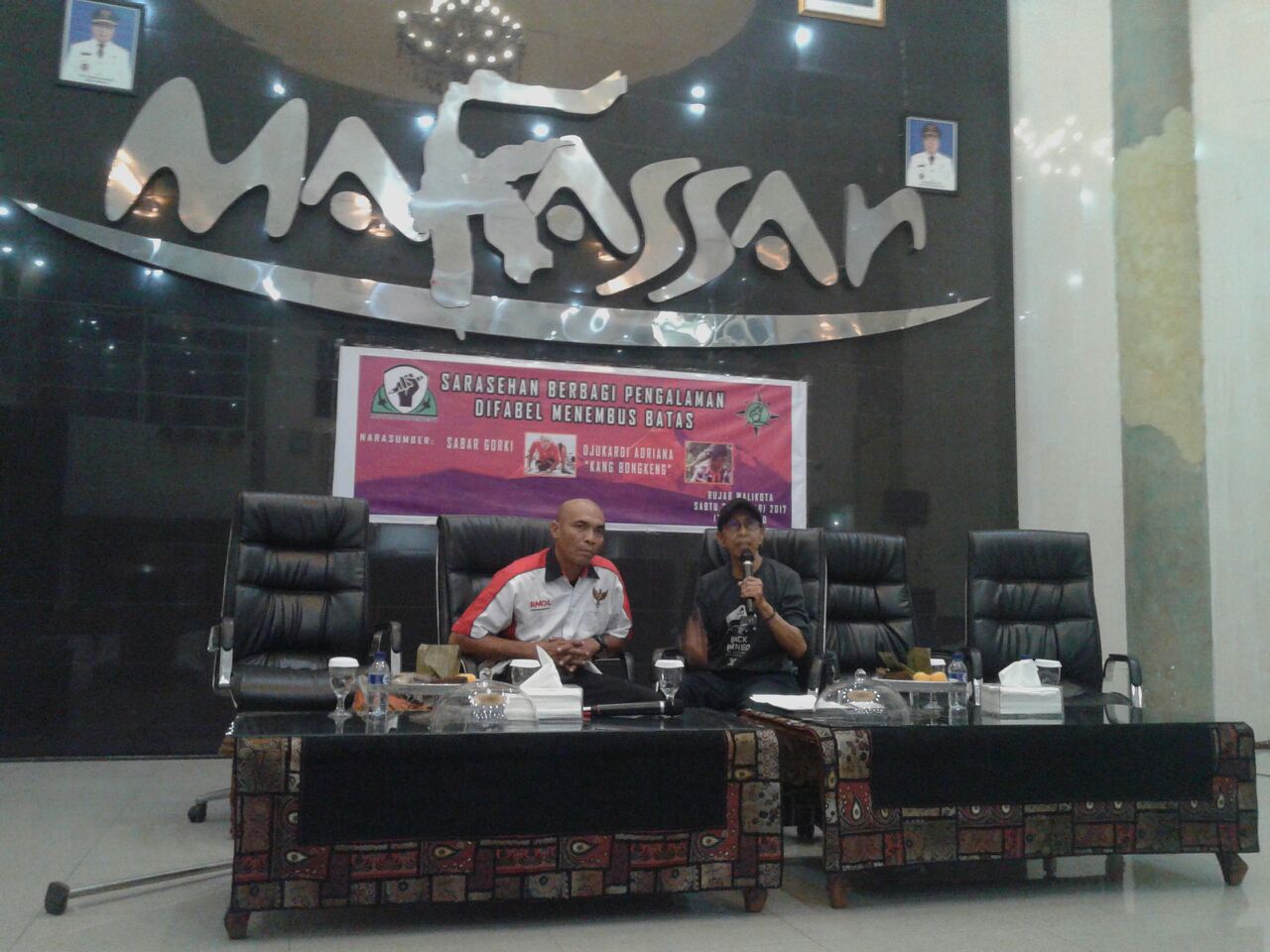 Pembicara dalam Sarasehan Difabel Menembus Batas, pendaki senior Nasional yang tidak asing lagi dikalangan pendaki gunung seperti Sabar Gorki dan Djunaedi Adriana (Kang Bongkeng).