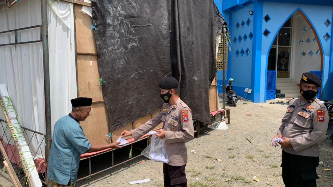 Tegakkan Prokes, Dit Pam Obvit Polda Sulbar Bagikan Masker pada Jamaah Sholat Jumat