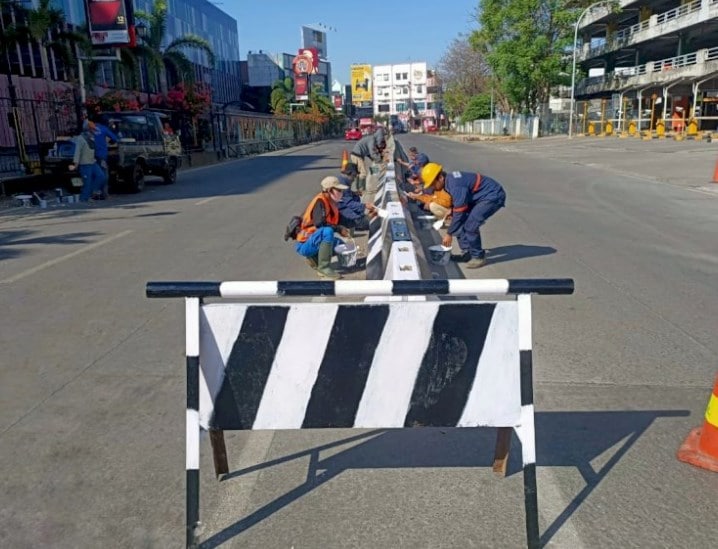 MakassarJaga Estetika Kota, Satgas BJJ Dinas PU Makassar Cat Barrier JalanKamis, 10 Juni 2021Selasa, 9 November 2021