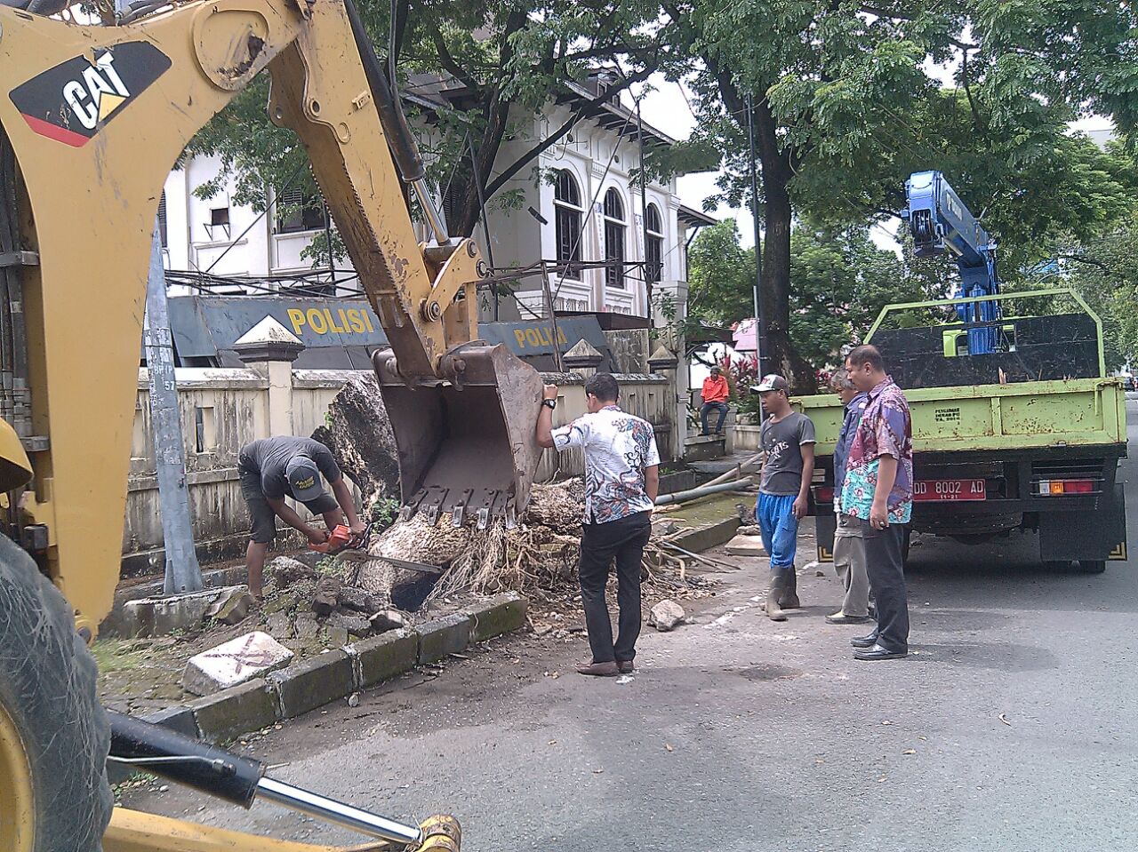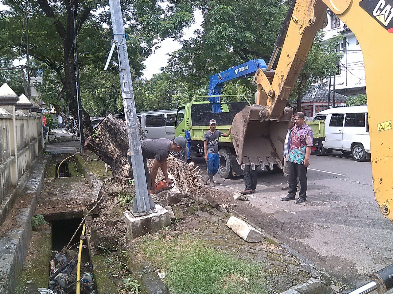 Tata Trotoar, PU Kerahkan Escavator Cabut Akar Pohon Tumbang