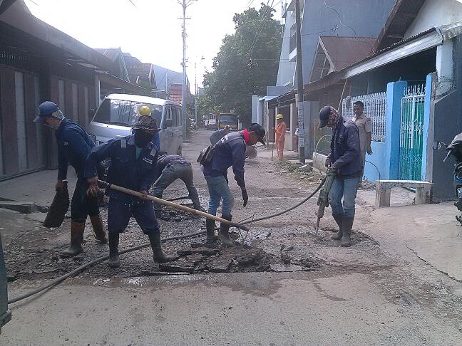 Beritaini, Foto – Tim ‘Sapu Lubang’ Dinas Pekerjaan Umum (DPU) Kota Makassar sedang membenahi lubang di jalan Jl. Cendrawasih III, nampak pekerja Tim Sapu Lubang berjibaku mengatasi jalan yang rusak, Senin (17/4/2017).